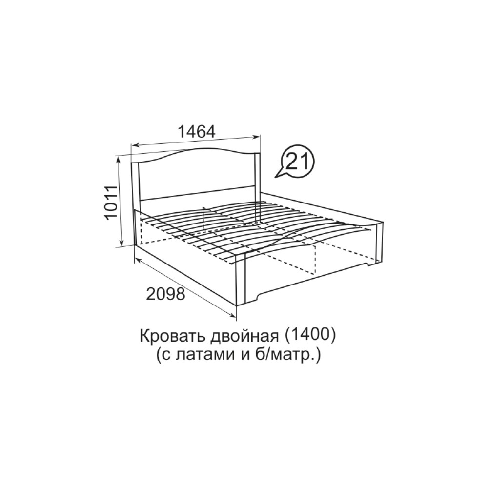 Виктория (21) кровать двойная 1400 (латы) белый снег