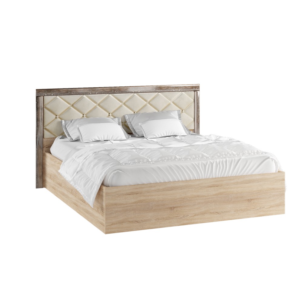 Двуспальная кровать Мадлен140х200 см станет центральным элементом в Вашей спальне и подарит много часов комфортного сна и отдыха. Мягкое изголовье кровати с утяжкой в форме ромбов и декоративными пуговицами обтянуто эко-кожей цвета «крем». Комплектуется настилом из ДСП 2С.