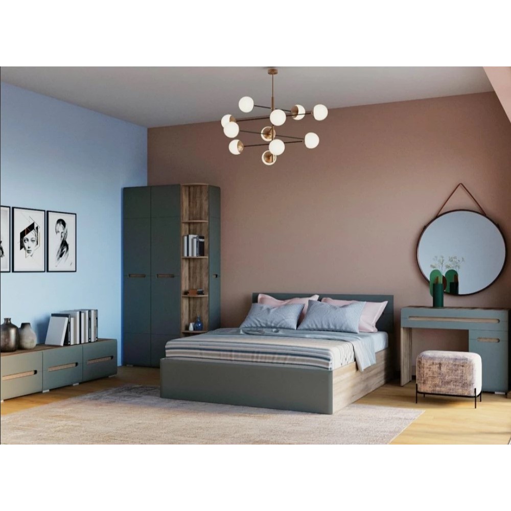 Двуспальная кровать- центральный предмет мебели в спальне. Комплектуется настилом ЛДСП, матрас приобретаются отдельно.