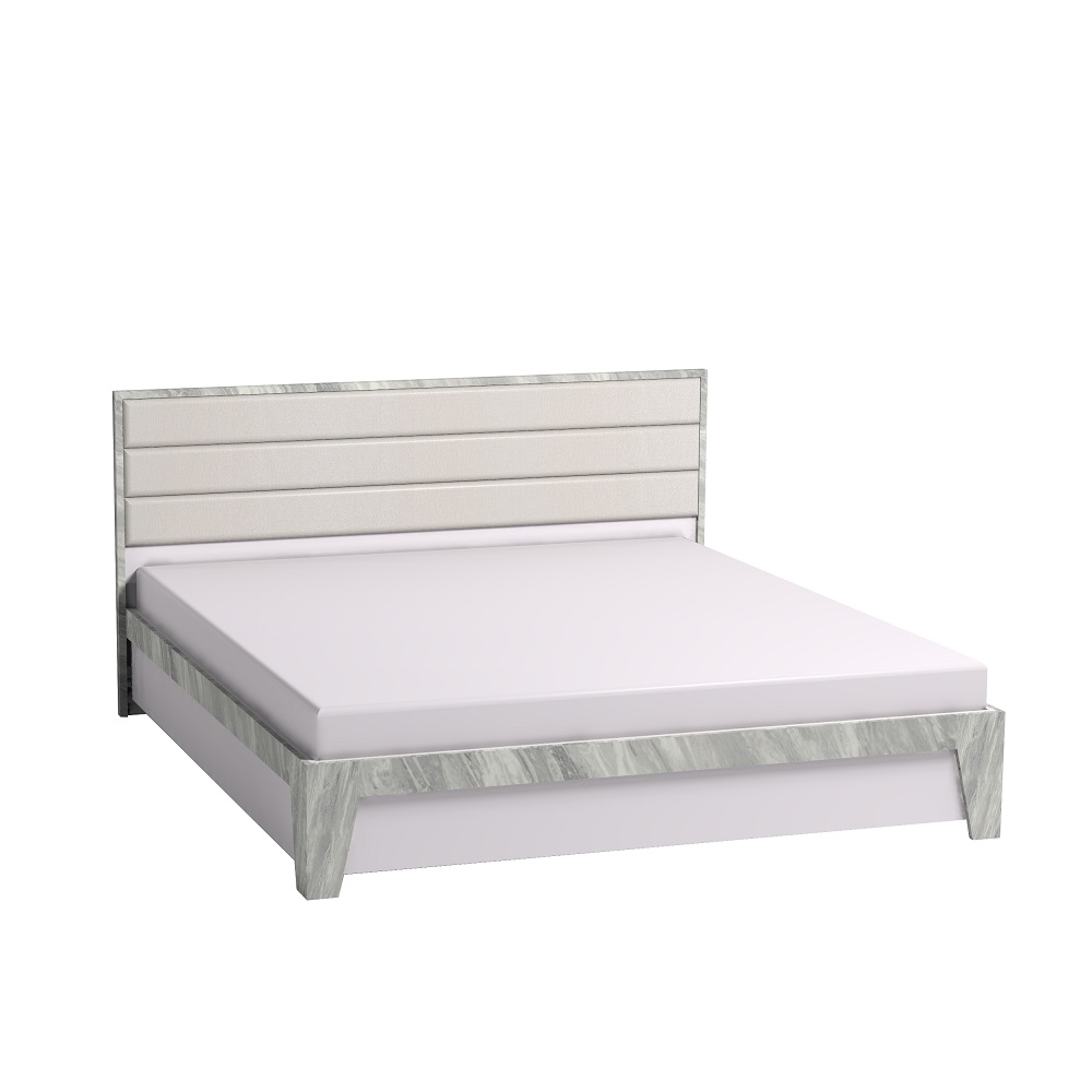 Ключевым элементом в Вашей современной спальне станет двуспальная кровать Айрис. Текстурные опоры и массивная рама на изголовье поддерживают направленность всей коллекции, выполненной в современном стиле. Мягкая спинка со стяжкой обтянута белой экокожей, которая не боится деформации и не требует специального ухода. Кровать комплектуется стационарным ортопедическим основанием, максимальная нагрузка на которое 440 кг с учетом веса матраса.