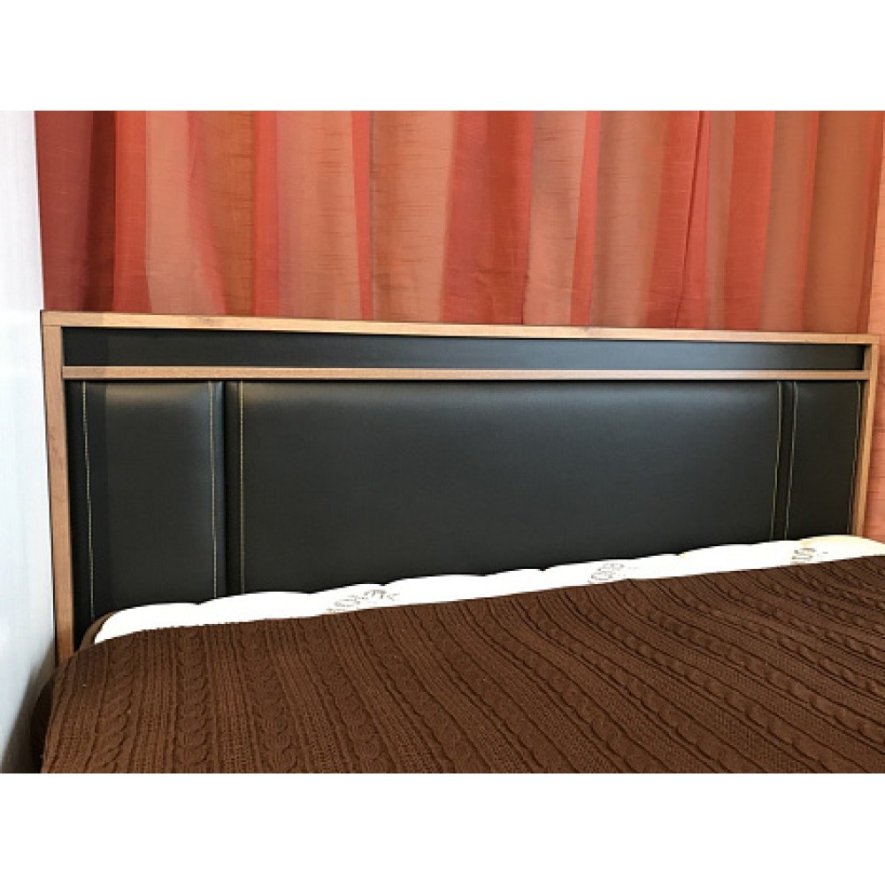 Двуспальная кровать NATURE 306 станет стильным дополнением для вашей спальни. Спокойный и расслабляющий древесный декор кровати - Дуб Табачный Craft поможет создать атмосферу настоящего уюта и комфорта в комнате. А контрастные вставки из ЛДСП и декоративные золотые нити на черной экокоже сделают изголовье кровати более интересным и современным. Экокожа очень легко чистится и не выгорает под воздействием солнечных лучей.