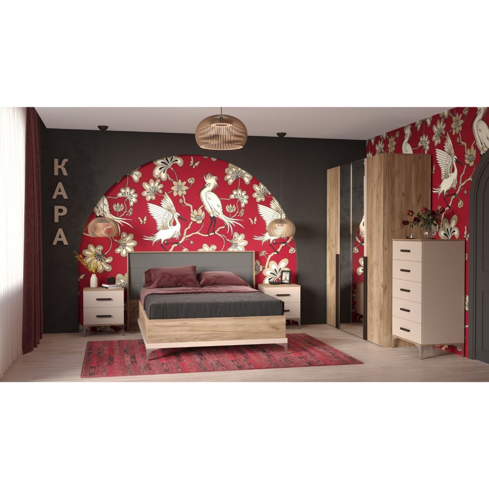 Двухспальная кровать шириной 140 см из коллекции Кара выглядит эффектно благодаря объёмному изголовью выразительной формы в обрамлении. Высокие точеные ножки подчеркивают направленность всей коллекции и удобны при уборке: позволяют роботу-пылесосу поддерживать порядок даже под кроватью.