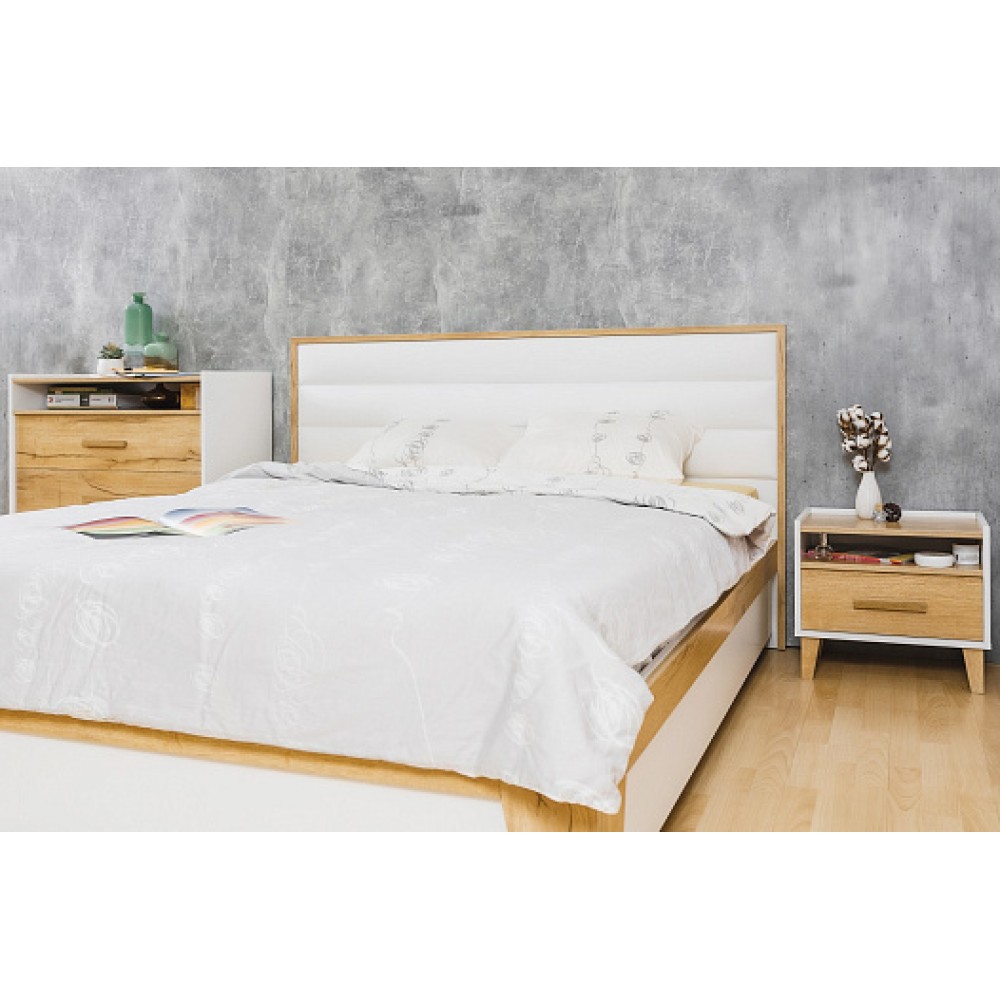 Ключевым элементом в Вашей современной спальне станет двуспальная кровать Айрис. Текстурные опоры и массивная рама на изголовье поддерживают эко-направленность всей коллекции, выполненной в скандинавском стиле. Мягкая спинка со стяжкой обтянута белой экокожей, которая не боится деформации и не требует специального ухода. Кровать комплектуется универсальным металлическим основаниемс гибкими ламелями из фанеры.Оно экологично, безопаснои выдерживает максимальную нагрузку 300 кг. Матрас приобретается отдельно.