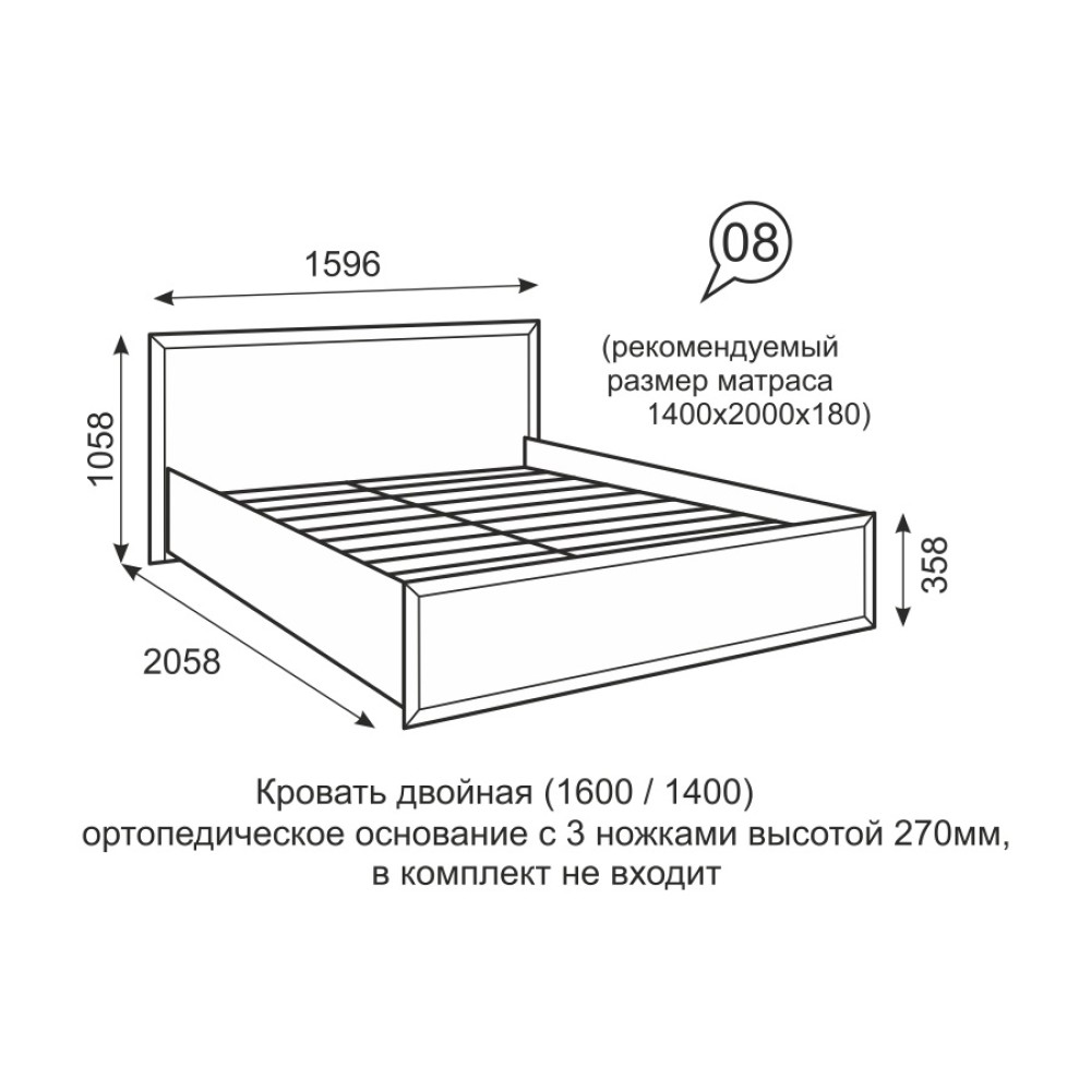 - матрас, спальное место кровати 1600*2000 мм