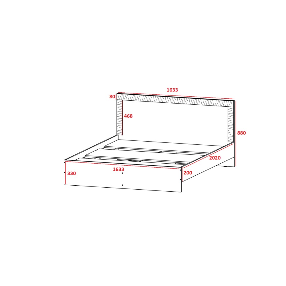 Дополнительно приобретается матрас, спальное место кровати 160х200 см.