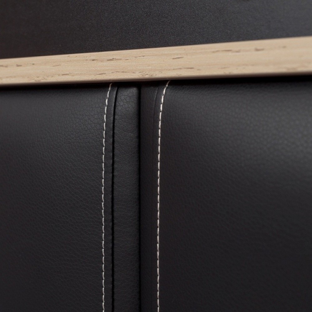 Двуспальная кровать NATURE 308 Кровать Люкс с подъемным механизмом (1400) станет стильным дополнением для вашей спальни. Спокойный и расслабляющий древесный декор кровати - Дуб Табачный Craft поможет создать атмосферу настоящего уюта и комфорта в комнате. А контрастные вставки из ЛДСП и декоративные золотые нити на черной экокоже сделают изголовье кровати более интересным и современным. Экокожа очень легко чистится и не выгорает под воздействием солнечных лучей. Расходовать дорогие квадратные метры с максимальной рациональностью позволит подъемное основание, которое идет в комплекте с корпусом. Благодаря газлифтам, кровать поднимается без усилий и обеспечивает доступ к вместительному внутреннему коробу. На дно свободной ниши кладутся листы ХДФО, предохраняющие вещи от запыления.