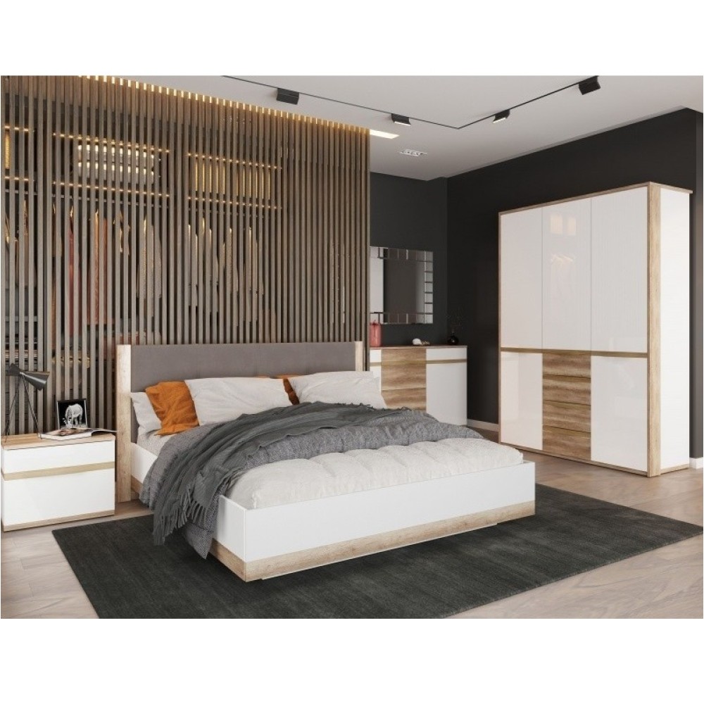 Стильная кровать из новой модульной серии «Николь-Люкс» станет изюминкой интерьера Вашей спальни. Сочетание различных текстур и цветов, элементы из массива натурального дерева и мягкое текстильное изголовье со стяжкой — такая кровать будет ежедневно дарить Вам удовольствие. Минималистичный стиль подчеркивают гармоничные светлые тона и лаконичные формы. Комфортная двуспальная кровать со спальным местом 160х200 обеспечит комфортный и здоровый сон, а комплектация с подъемным механизмом и ящиком для белья позволит организовать систему хранения и сэкономить пространство.