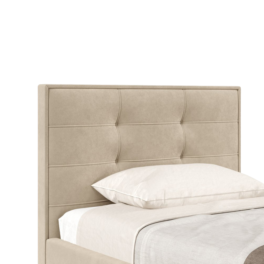 Изголовье и корпус кровати обтянуты велюром, приятным на ощупь и легко чистящимся.