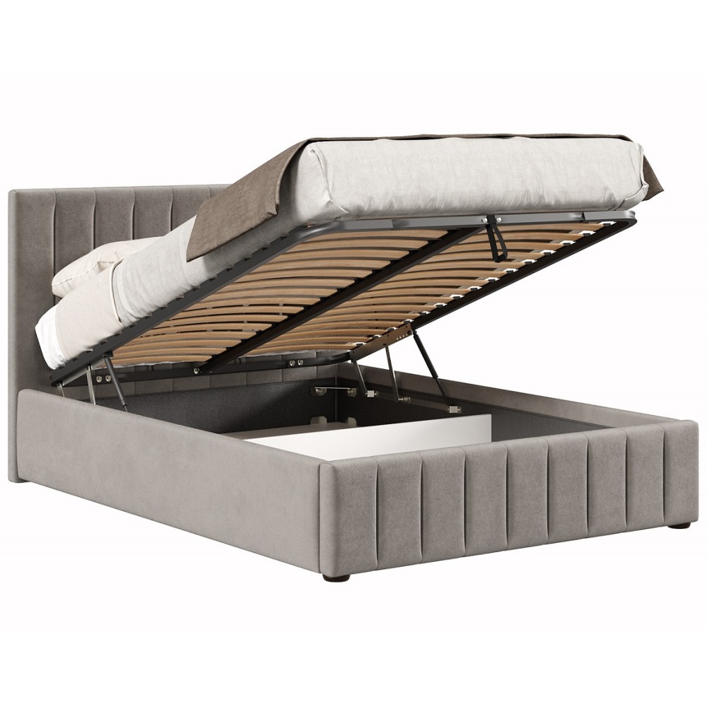 Двуспальная кровать с подъёмным механизмом Верона в пепельных тонах сочетает в себе эстетику сдержанной роскоши, индивидуальность и практичность. Мягкая обивка создаёт атмосферу уюта, а основание с ламелями обеспечивает комфортный сон. Особенностью этой модели является повторяющийся декор, который украшает спинку и изножье кровати. Вертикальные строчки подчёркивают симметрию и правильные линии кровати.