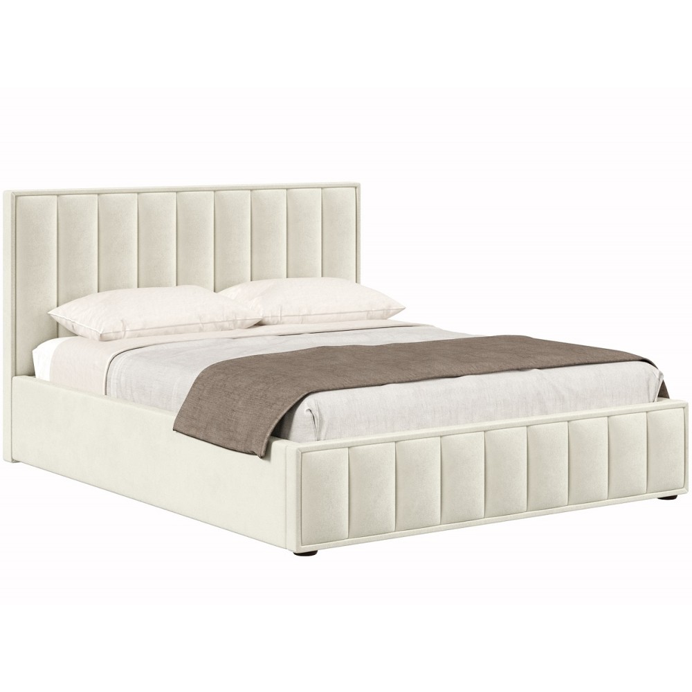 В дизайне кровати с подъёмным механизмом Анкона гармонично сочетаются элегантность, индивидуальность и практичность. Мягкая обивка создаёт атмосферу уюта. Отличительной чертой этой модели является повторяющийся узор, который присутствует на изголовье и изножье. Вертикальные строчки подчёркивают симметричность и чёткость линий кровати.