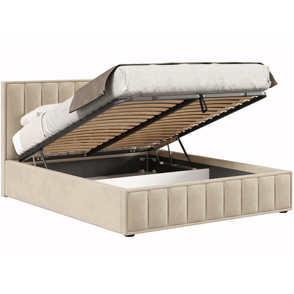 В дизайне кровати с подъёмным механизмом Анкона гармонично сочетаются элегантность, индивидуальность и практичность. Мягкая обивка создаёт атмосферу уюта. Отличительной чертой этой модели является повторяющийся узор, который присутствует на изголовье и изножье. Вертикальные строчки подчёркивают симметричность и чёткость линий кровати.