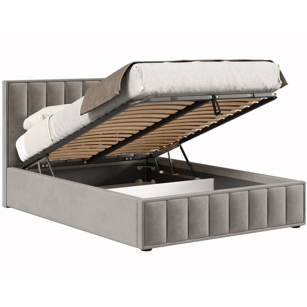 В дизайне кровати с подъёмным механизмом Анкона гармонично сочетаются элегантность, индивидуальность и практичность. Мягкая обивка создаёт атмосферу уюта. Отличительной чертой этой модели является повторяющийся узор, который присутствует на изголовье и изножье. Вертикальные строчки подчёркивают симметричность и чёткость линий кровати.