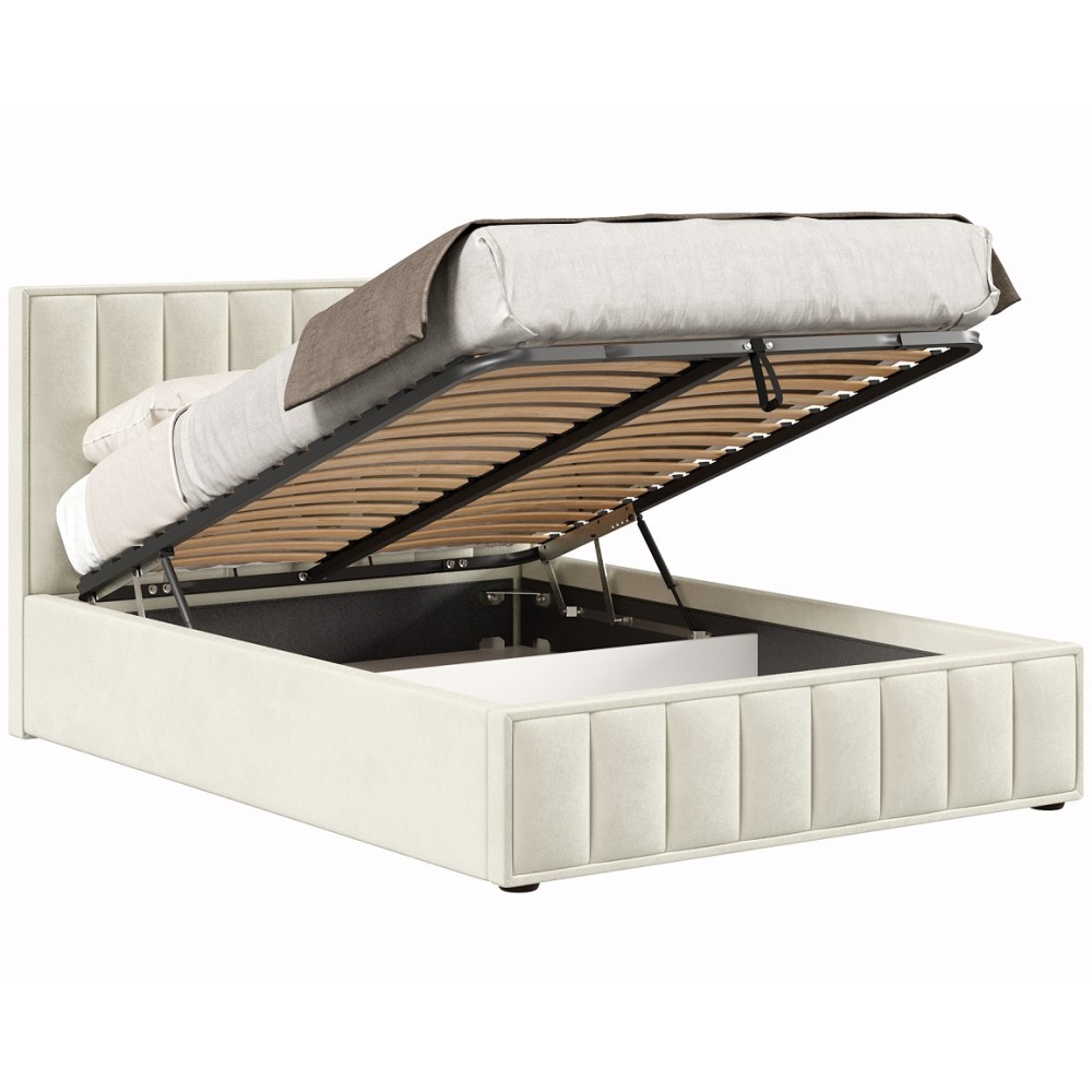 В дизайне кровати с подъёмным механизмом Анкона гармонично сочетаются элегантность, индивидуальность и практичность. Мягкая обивка создаёт атмосферу уюта. Отличительной чертой этой модели является повторяющийся узор, который присутствует на изголовье и изножье. Вертикальные строчки подчёркивают симметричность и чёткость линий кровати.