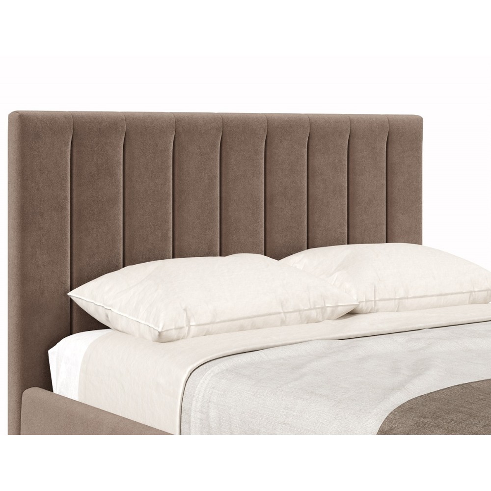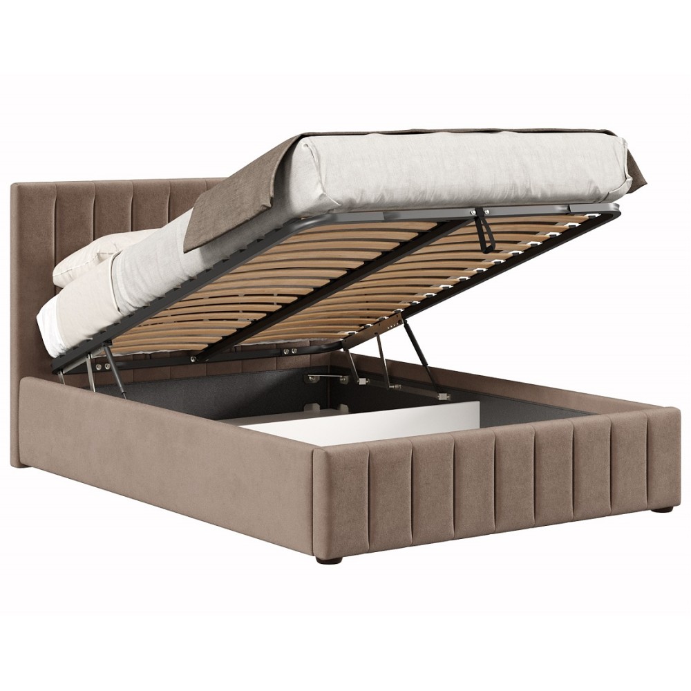Двуспальная кровать с подъёмным механизмом Верона в цвете какао сочетает в себе эстетику сдержанной роскоши, индивидуальность и практичность. Мягкая обивка создаёт атмосферу уюта, а основание с ламелями обеспечивает комфортный сон. Особенностью этой модели является повторяющийся декор, который украшает спинку и изножье кровати. Вертикальные строчки подчёркивают симметрию и правильные линии кровати.