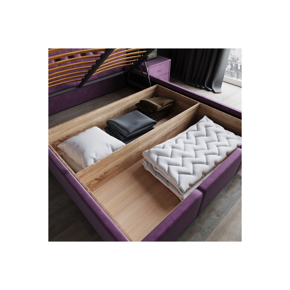 Кровать Октавия с подъёмным механизмом — отличный выбор для тех, кто ценит комфорт и функциональность. Подъемный механизм позволит легко и быстро получить доступ к скрытому пространству под матрасом. Там можно разместить постельное белье, сезонную одежду, игрушки или другие предметы, максимизируя использование доступного места в комнате. Мягкое изголовье с каретной стяжкой украшено декоративными пуговицами в цвет обивки кровати. Царга кровати покрыта поролоном 10 мм и обтянута двухслойным плотным велюром с флисовой подкладкой. Корпус кровати установлен на пластиковые угловые опоры высотой 23 мм, обеспечивая стабильность и комфорт во время сна.