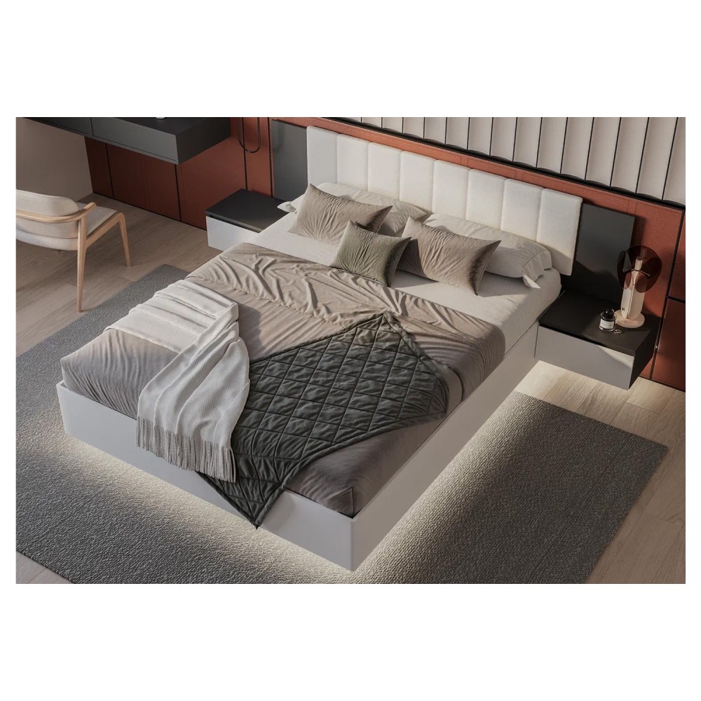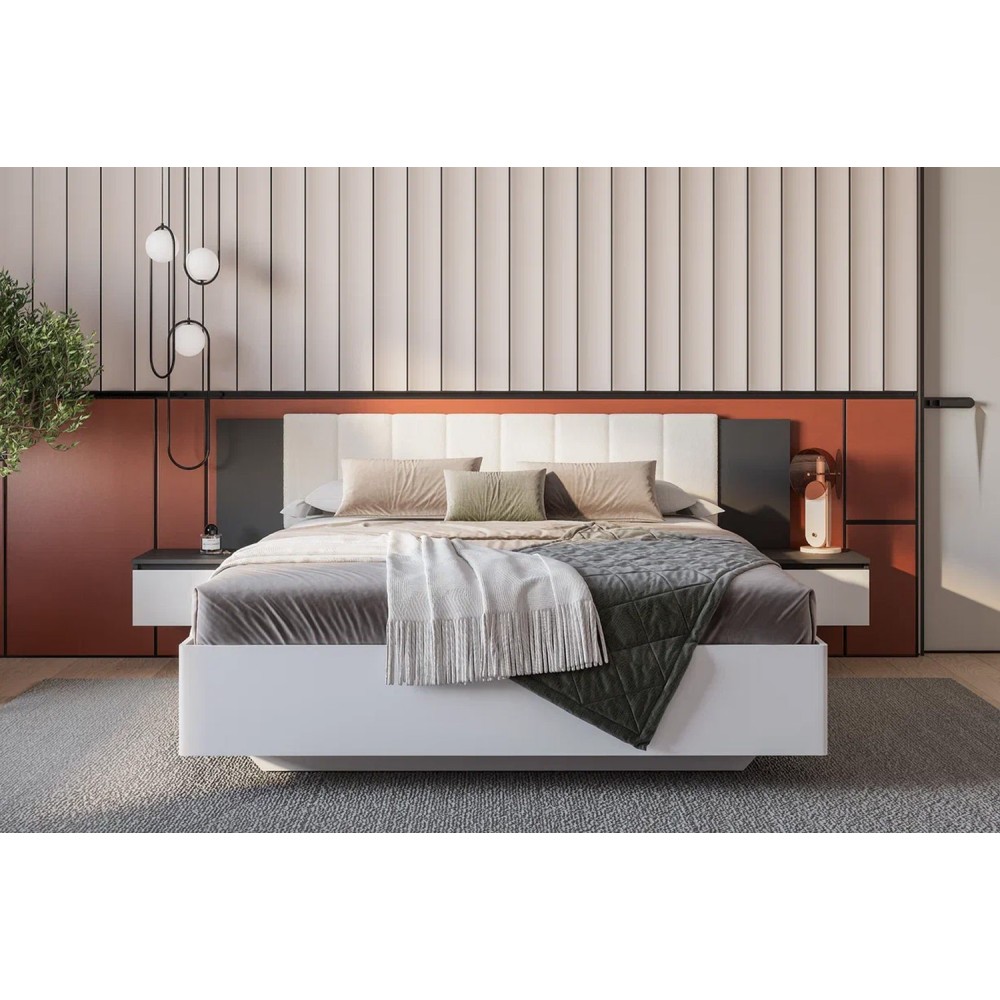 Коллекция "Шарм" - современная классика в контрастном исполнении "белый/графит". Кровать с парящим эффектом в трендовой ткани "барашек" - сердце коллекции.