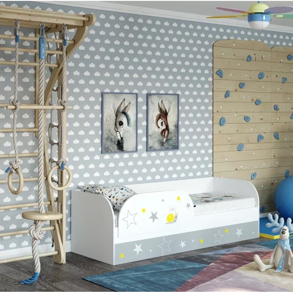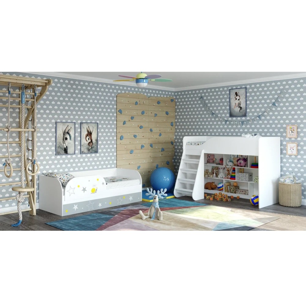 "Трио" Кровать детская (с подъёмным механизмом) КРП-01 белый/звездное детство