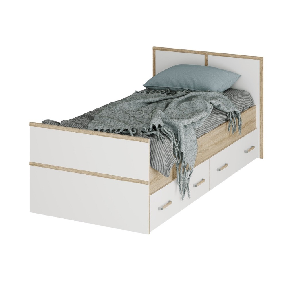 Практичное решение для организации пространства: ящики можно использовать для хранения постельного белья, сезонных вещей или других предметов. Рекомендуемая высота матраса для данной модели составляет 17-18 см.