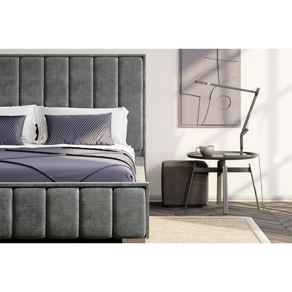 Изделие прекрасно будет смотреться в любом интерьере за счет велюра цвета графит, используемого в дизайне.