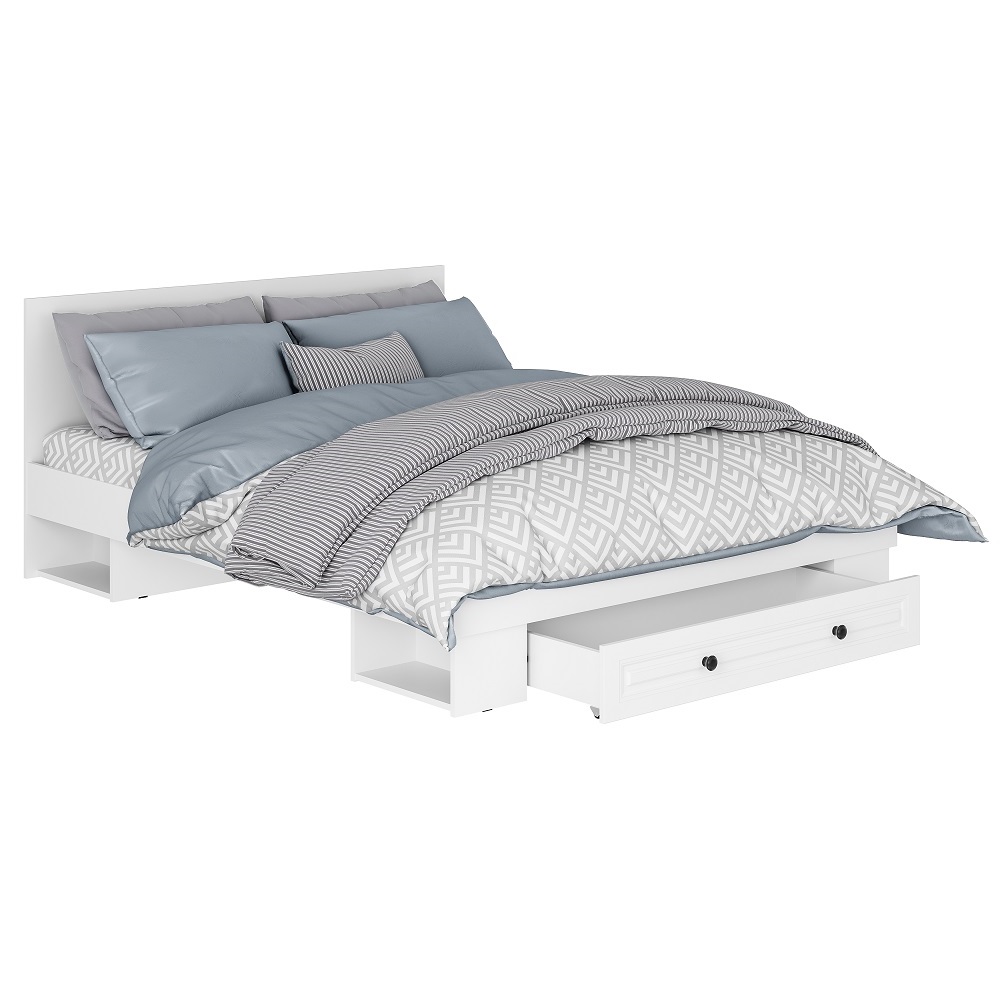 Стильная и удобная для ежедневного сна и отдыха кровать Софт подойдет как для небольшой, так и для просторной спальни. Наличие выдвижного ящика и открытых ниш позволит разместить постельное белье и вещи, которые необходимо иметь под рукой перед сном и после пробуждения.