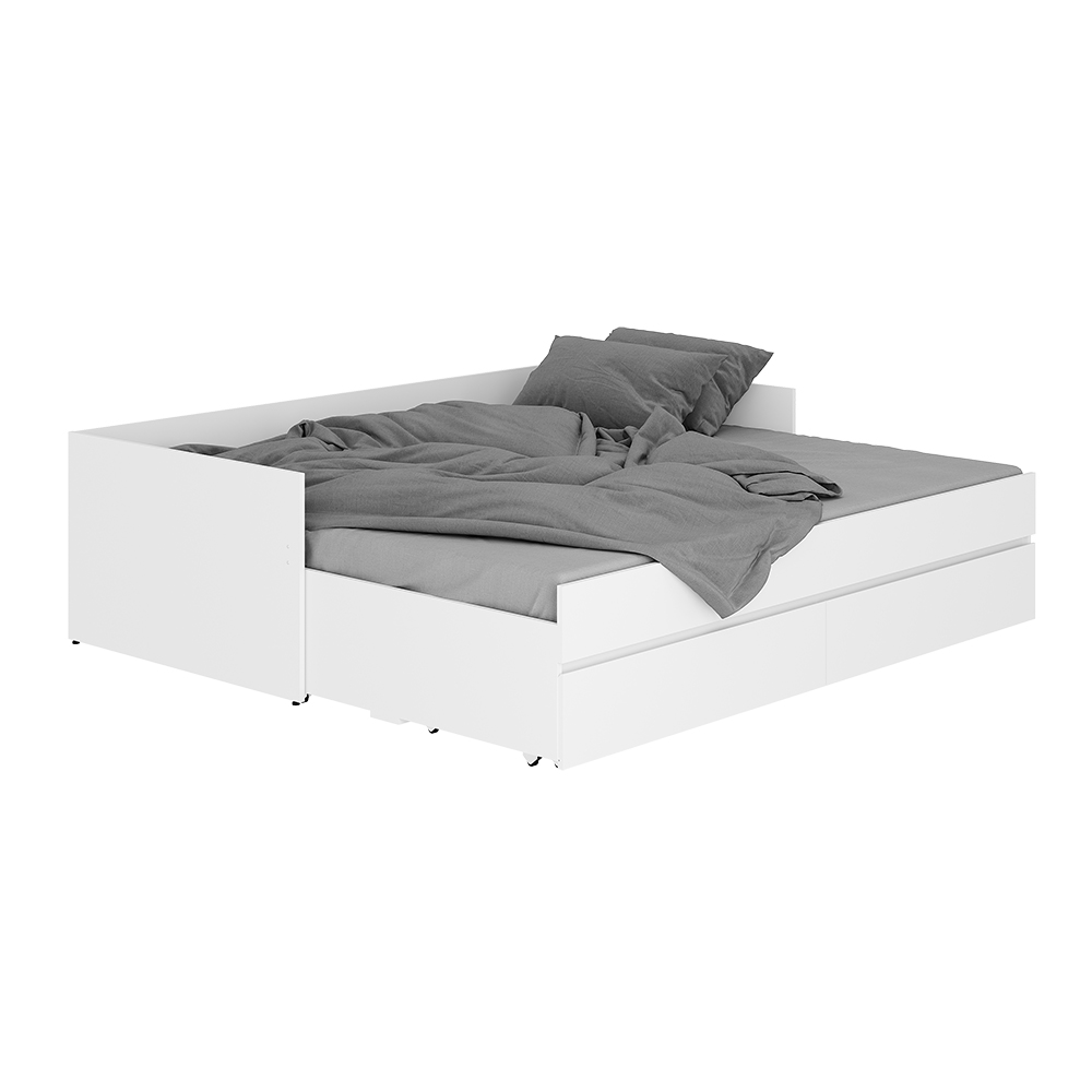 Простой, но стильный дизайн кровати-трансформера из коллекции Симпл покорит ваше сердце. Данная кровать удобна для небольших помещений, при необходимости ее можно раздвинуть и получить дополнительное спальное место. Кровать оснащена выкатными ящиками, в которых легко размещается постельное белье, текстиль и другие вещи, которым не нашлось места в шкафу.