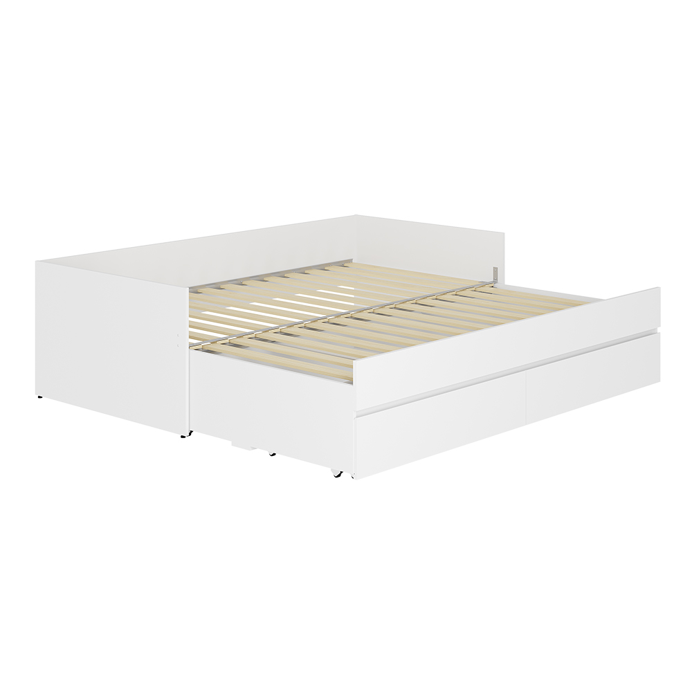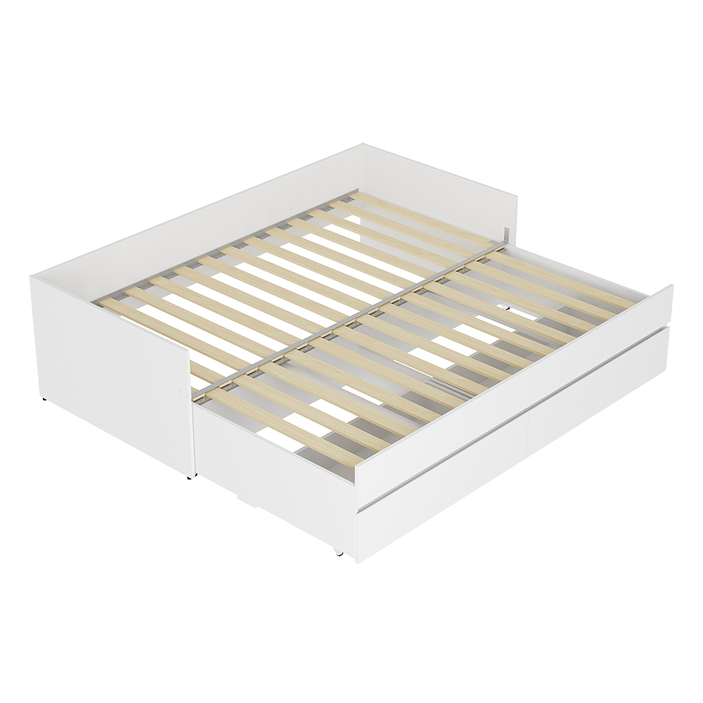 Простой, но стильный дизайн кровати-трансформера из коллекции Симпл покорит ваше сердце. Данная кровать удобна для небольших помещений, при необходимости ее можно раздвинуть и получить дополнительное спальное место. Кровать оснащена выкатными ящиками, в которых легко размещается постельное белье, текстиль и другие вещи, которым не нашлось места в шкафу.