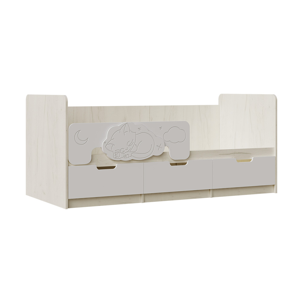 Кровать Юниор выполнена в современном стиле, который подойдёт для любого интерьера детской. Модель комплектуется ящиками, в которых вы можете разместить игрушки, постельное белье и даже одежду ребенка. На фасадах ящиков отсутствует лицевая фурнитура для большей безопасности детей.