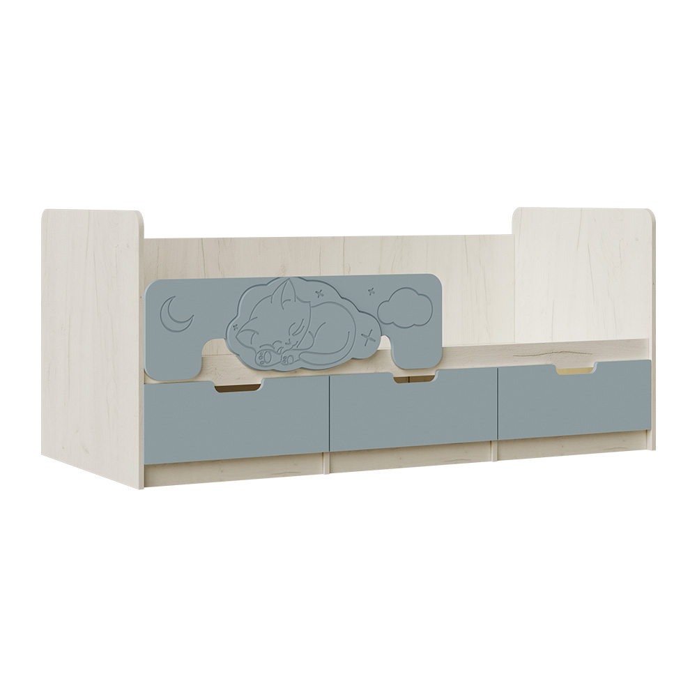 Кровать Юниор выполнена в современном стиле, который подойдёт для любого интерьера детской. Модель комплектуется ящиками, в которых вы можете разместить игрушки, постельное белье и даже одежду ребенка. На фасадах ящиков отсутствует лицевая фурнитура для большей безопасности детей.