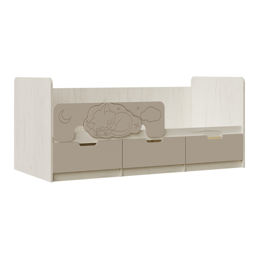 Кровать Юниор выполнена в современном стиле, который подойдёт для любого интерьера детской. Модель комплектуется ящиками, в которых вы можете разместить игрушки, постельное белье и даже одежду ребенка. На фасадах ящиков отсутствует лицевая фурнитура для большей безопасности детей.