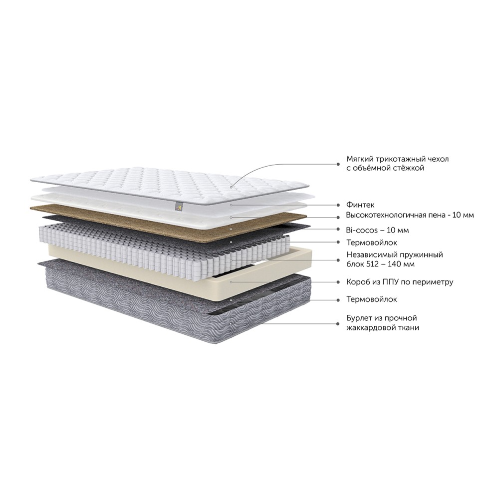 Fintek, ППУ высокотехнологичный 10 мм, Bi-cocos 10 мм, Термовойлок, Независимый пружинный блок