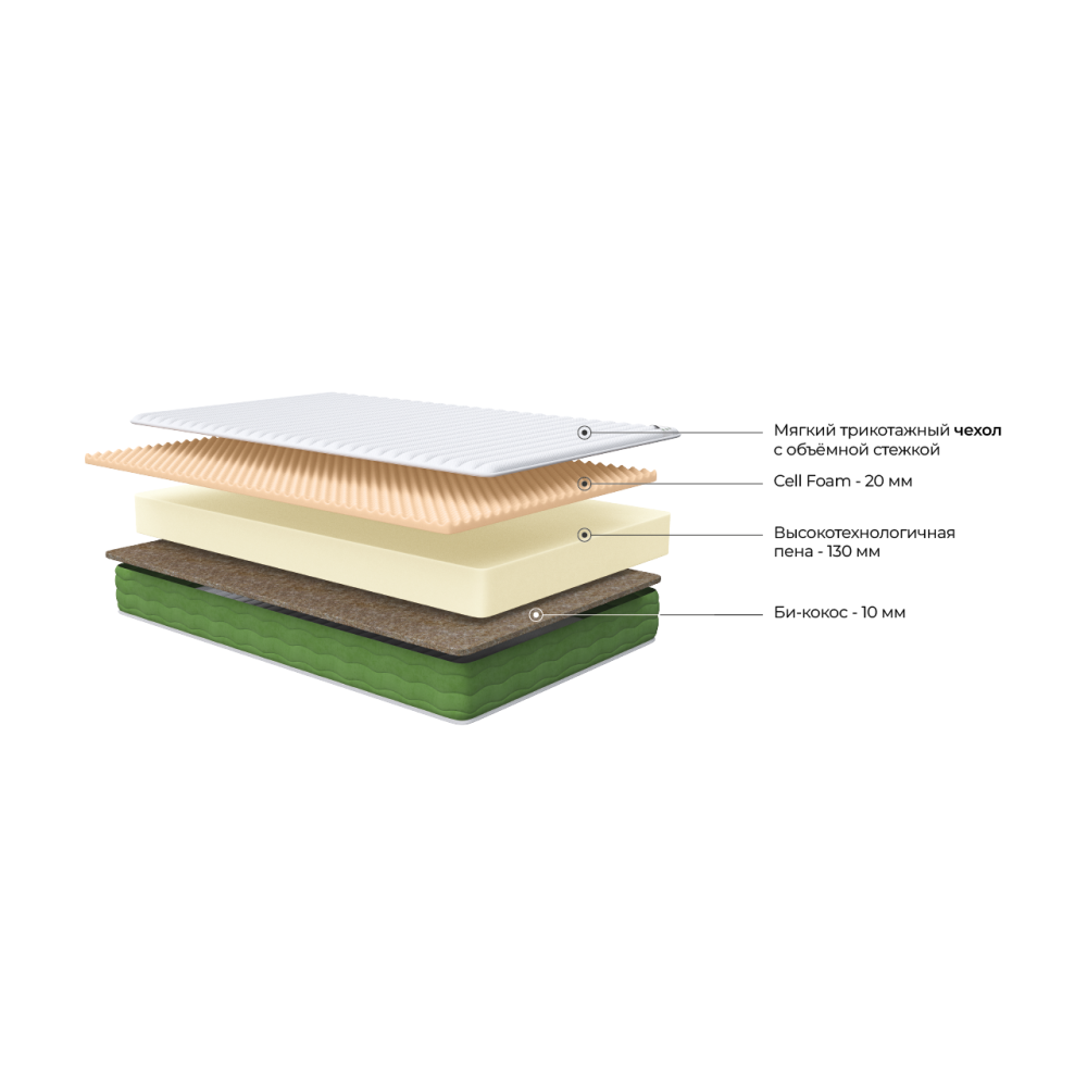 Ячеистая пена с массажным эффектом «Body Comfort», монолитная плита ППУ, би-кокос