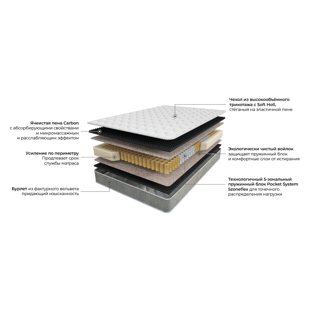 Ячеистая пена Карбон, Войлок, Пружинный блок, ППУ короб