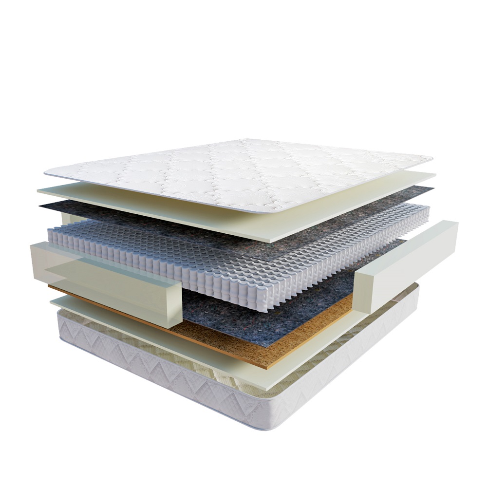 Деликатную поддержку Вашего тела во время сна на данном матрасе осуществит независимый анатомический пружинный блок “TFK" высотой 140 мм (512 пружин на 1 спальное место). Он адаптируется под индивидуальные особенности тела и повторяет каждый его изгиб для равномерного распределения веса и создания комфорта спящего. Жесткость матрасу придают кокосовое полотно и пена Orto Flex.