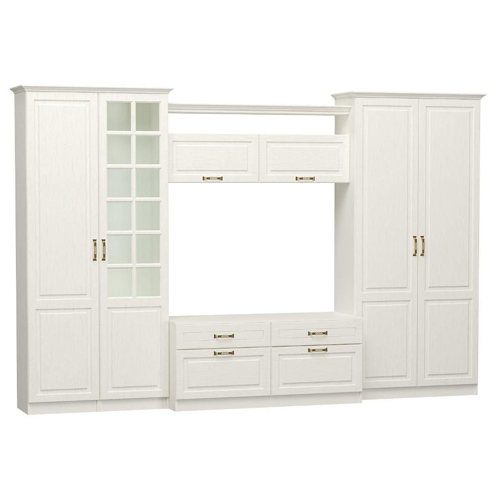 Корпус шкафа изготовлен из экологически чистой ламинированной ДСП толщиной 16 мм, а фасады — из МДФ с глубокой фрезеровкой. Это обеспечивает прочность и долговечность изделия.