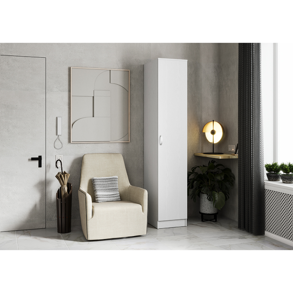 Пенал Ронда может быть установлен как самостоятельный модуль в любой комнате, или выступать в качестве элемента шкафной группы. Комплектуется набором полок, ручка пластиковая. Фасад можно перенавесить как на правую, так и на левую сторону. Также фасад может быть дополнен зеркалом – дополнительная опция.