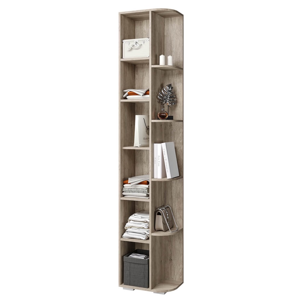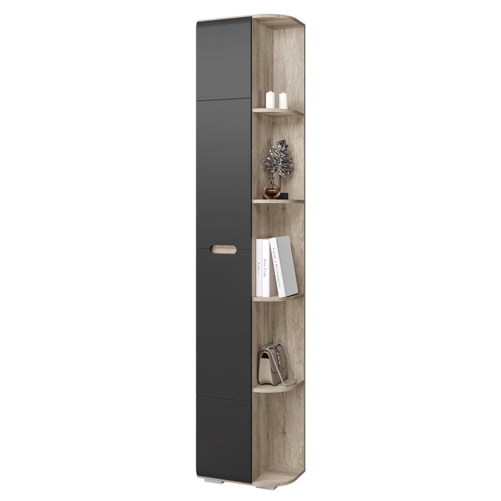Пенал Наоми не только организует хранение в любой комнате вашей квартиры. Благодаря угловому завершению с открытыми полками, в нем можно разместить необходимые предметы декора, которые должны быть на виду. Темные фасады дверцы, встроенная ручка и корпус в цвете дуб каньон позвояит изделию вписаться в современный интерьер. Красивое и практичное решение по лучшей цене — это Пенал с угловым завершением Наоми ПН-15