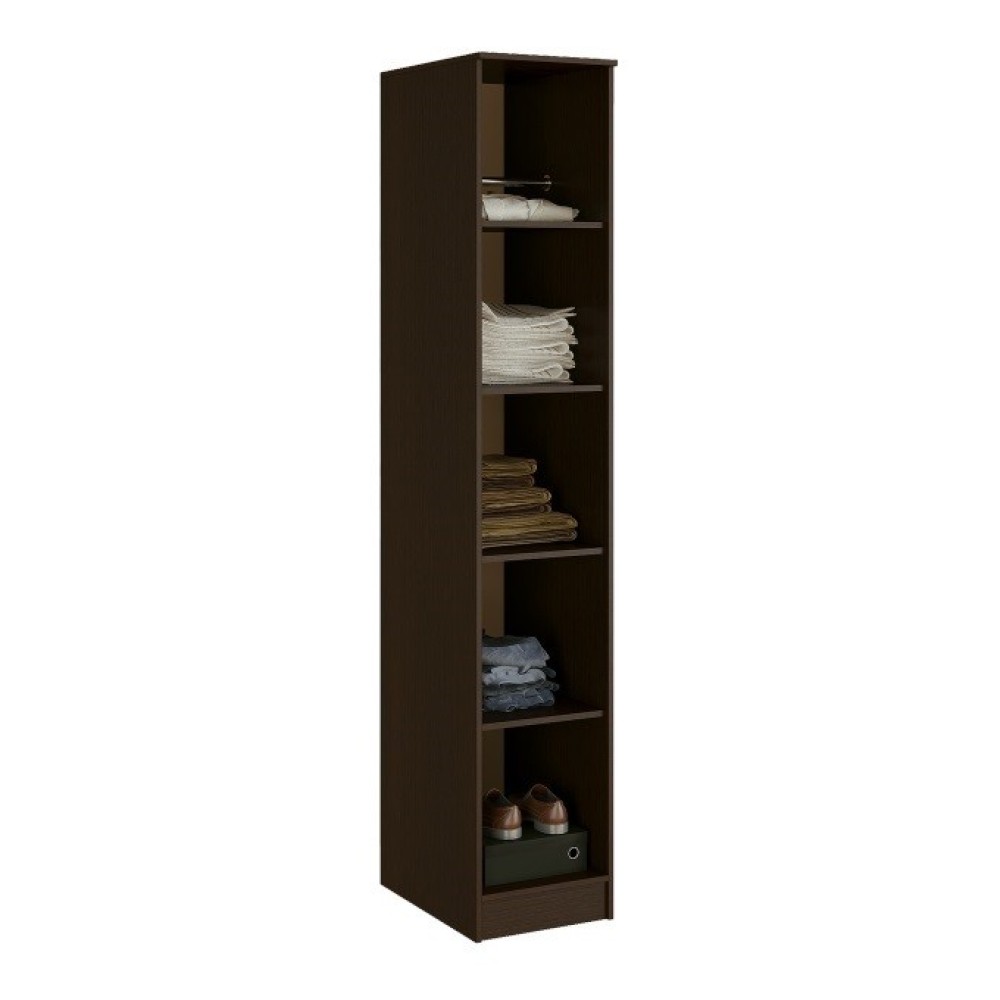 Пенал «Сакура» в цвете венге/лоредо — это стильный и функциональный предмет мебели, который идеально впишется в современный интерьер. Он имеет одно отделение и размеры 400 x 610 x 2216 мм. Внутри расположены пять вместительных полок и продольная штанга для вешалок.
