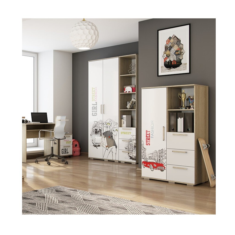 Изюминкой коллекции Сенди являются интересные элементы с фотопечатью. Данная модель выделяется огромным функционалом - множество выдвижных ящиков, пенал, комод, угловой шкаф, компьютерный стол. И самое главное - Вы можете самостоятельно подобрать варианты модулей, которые идеально впишутся в интерьер детской комнаты!