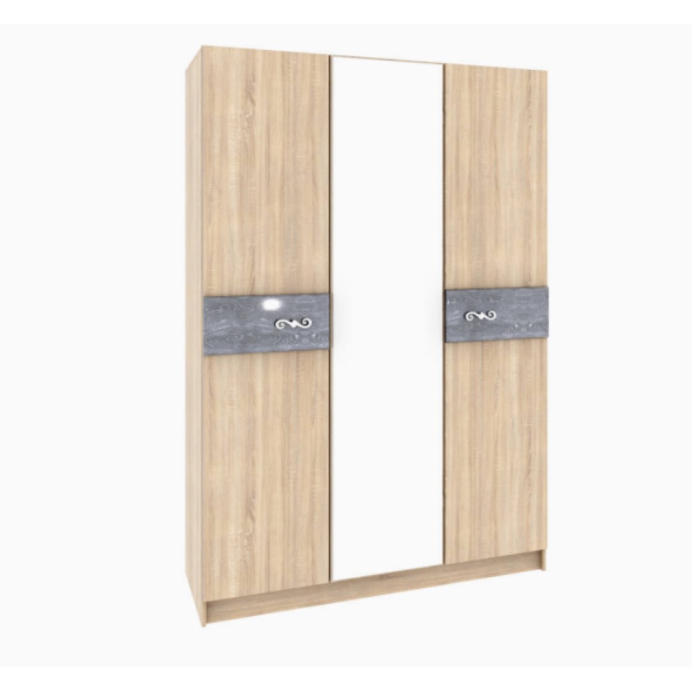 Спальня Мадлен шкаф 3-хств. дуб сонома/МДФ дуб шале серебро
