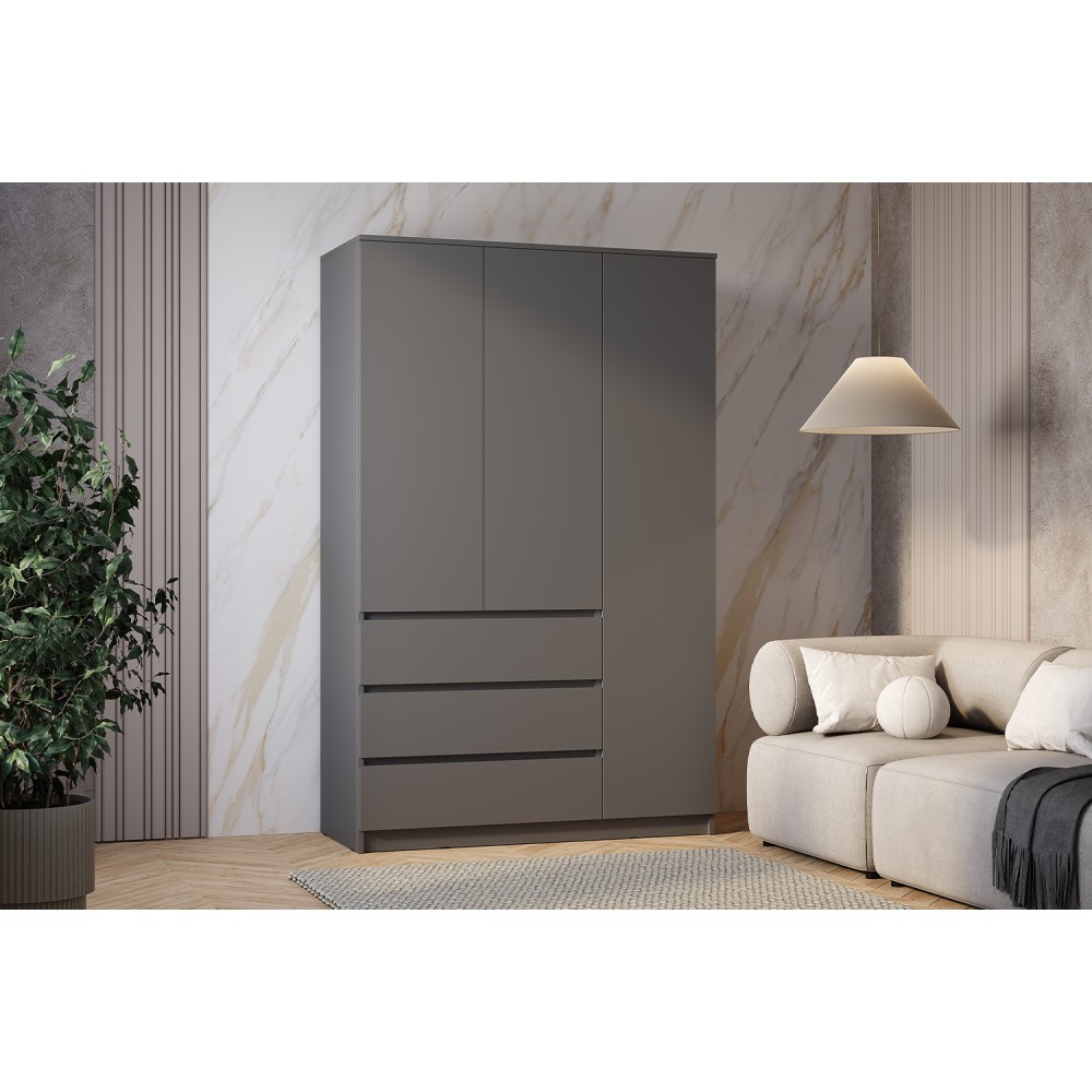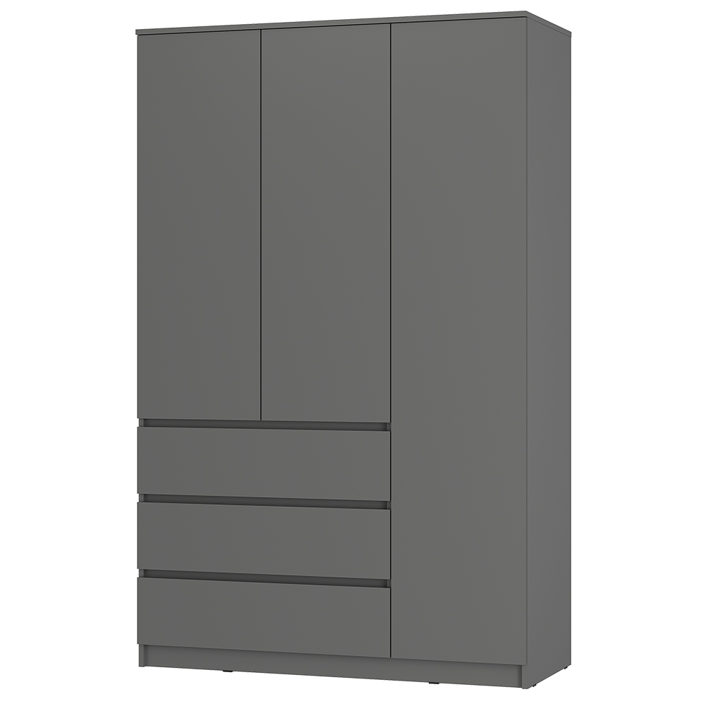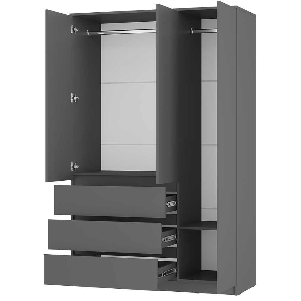 Шкаф 3-х створчатый Симпл ШК-08 - это стильное и функциональное решение для вашего интерьера. Его элегантный дизайн и современная отделка создают атмосферу свежести и простора. Внутреннее наполнение шкафа продумано до мелочей, создавая идеальные условия для хранения ваших вещей. Стационарная штанги позволят Вам с лёгкостью повесить любимую одежду, включая платья, рубашки и жакеты, обеспечивая им идеальный вид и доступность. Также шкаф оборудован тремя ящиками на шариковых направляющих.