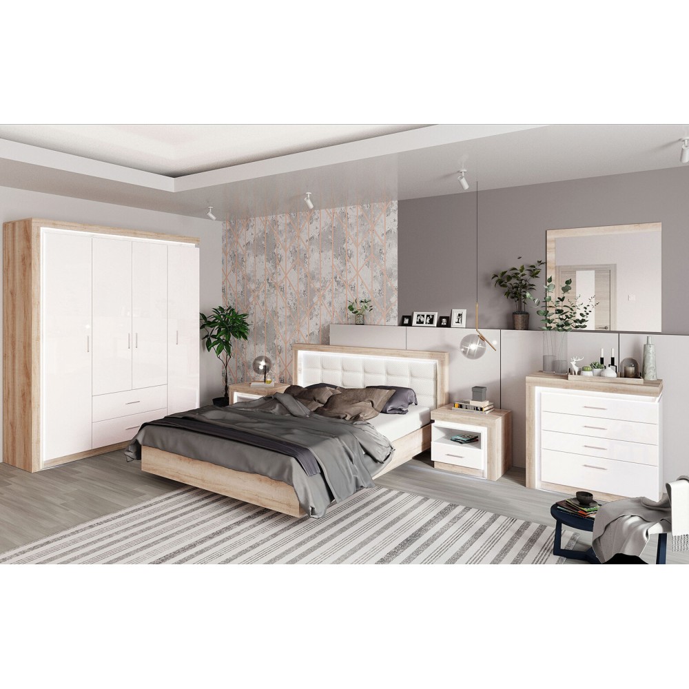 - Корпус ЛДСП 16 мм в декоре «Дуб Сакраменто» и фасад МДФ 16 мм в декоре «Белый снег»