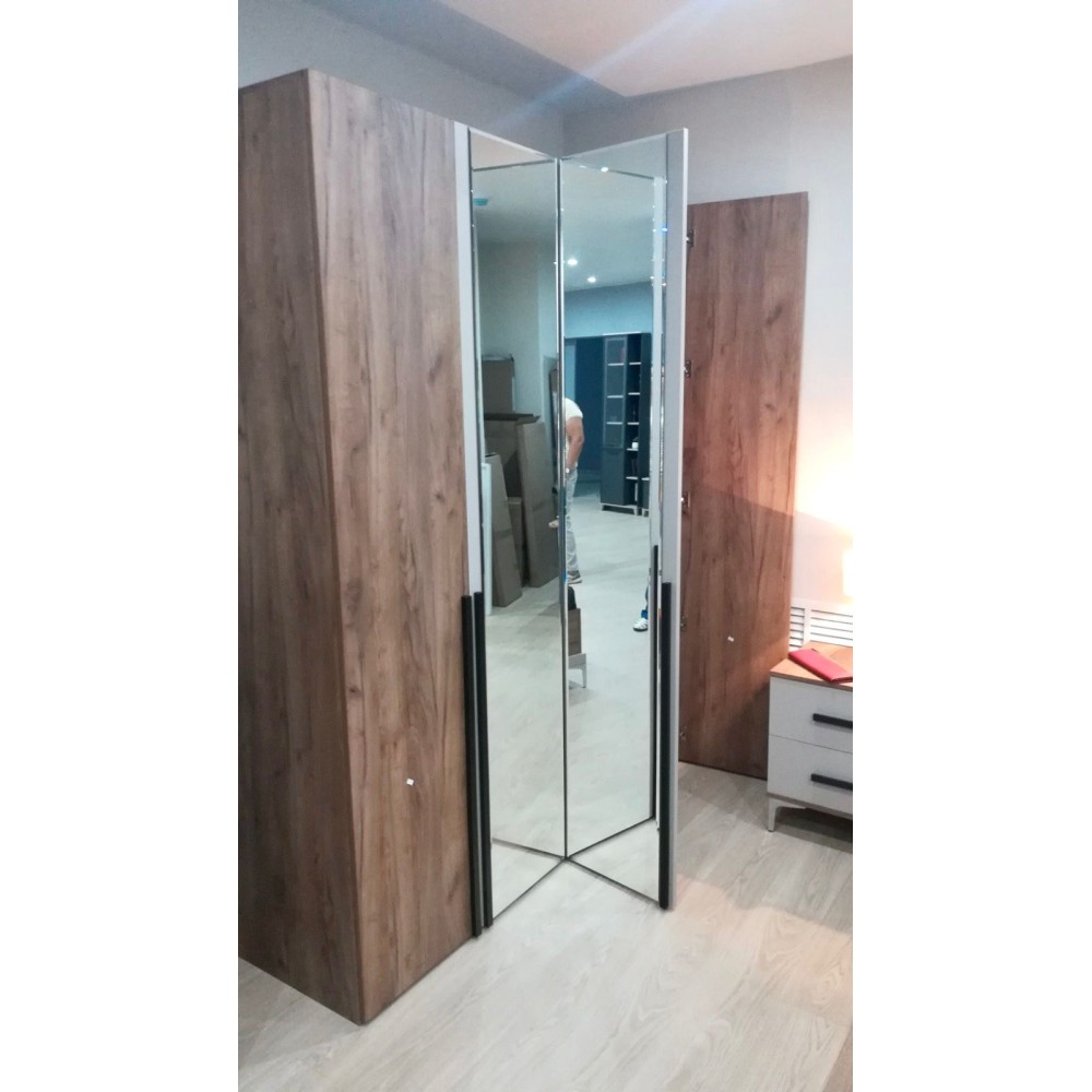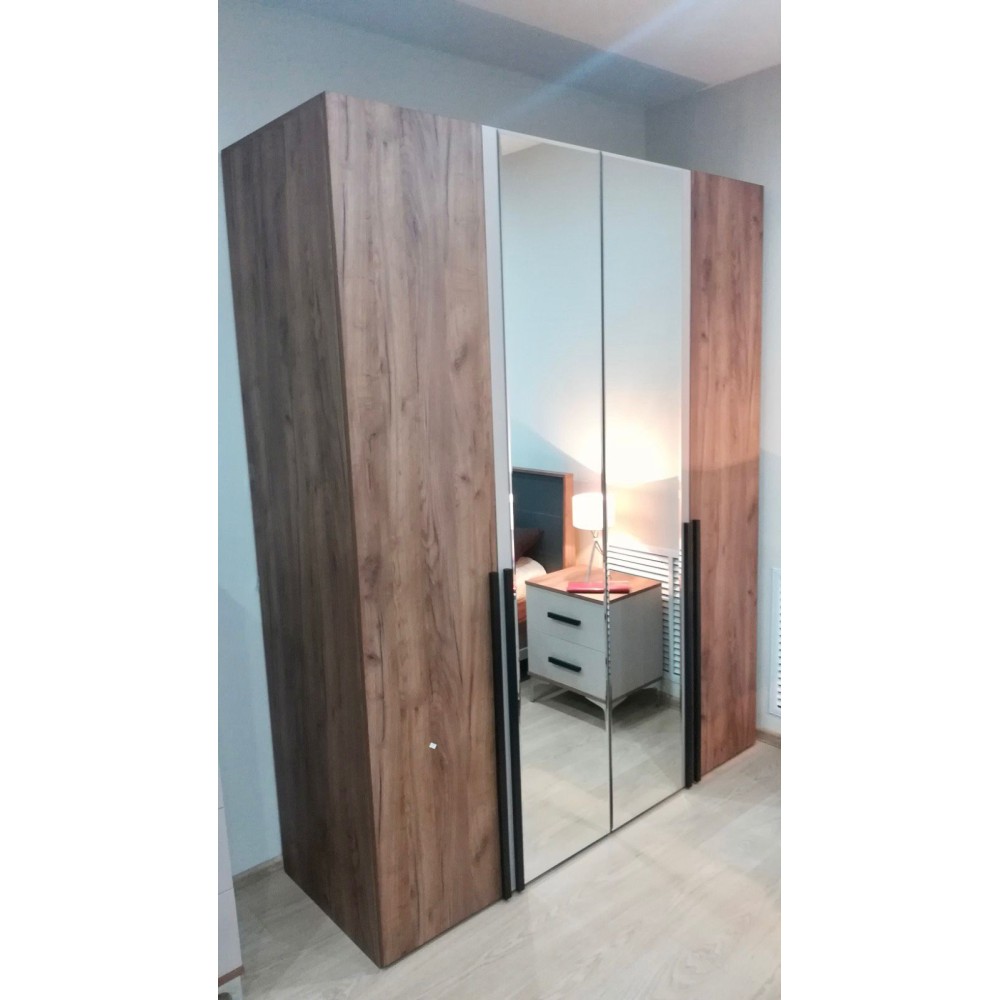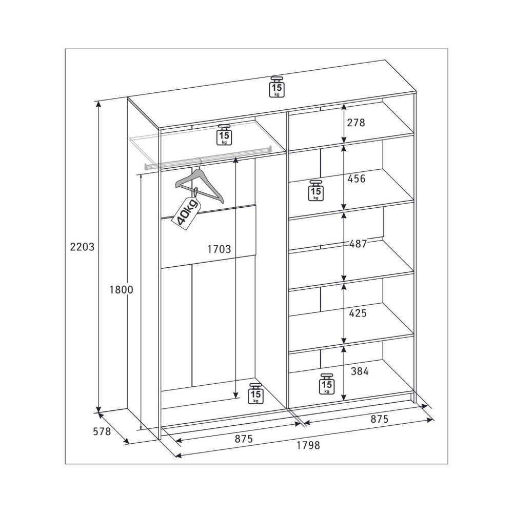 Широкий шкаф для одежды и белья Кара отличается многофункциональным наполнением для организации хранения вещей в прихожей или спальне. Огранённые фацетом зеркала на фасадах шкафа в полный рост выглядят аккуратно, создавая красивые блики.