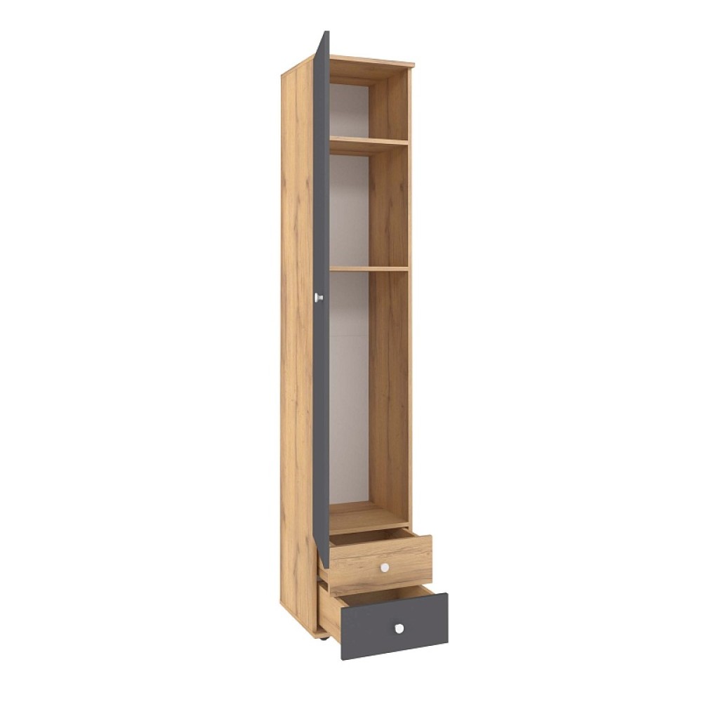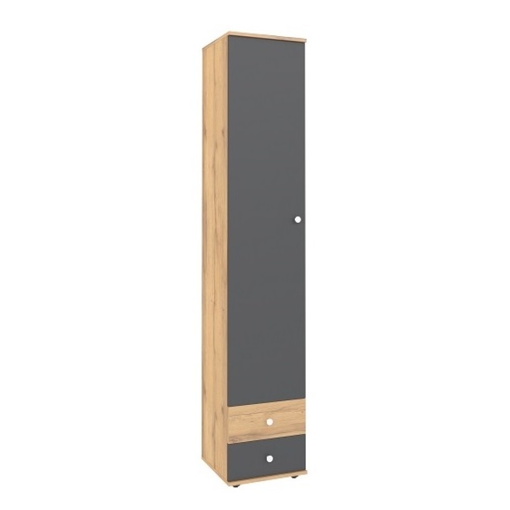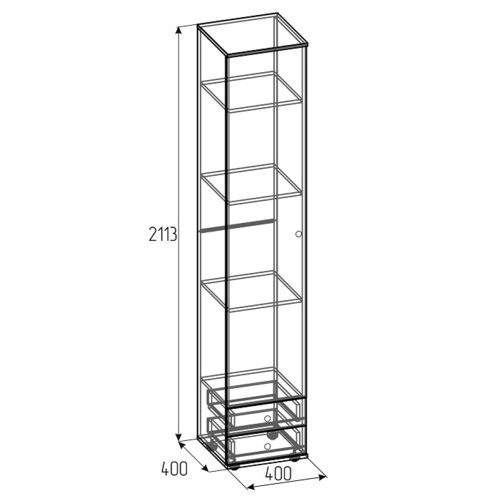 Шкаф-пенал для белья имеет ширину всего 400 мм, благодаря чему Вы сможете расположить его даже в небольшой по площади комнате. В комплекте три регулируемые по высоте полки и два выдвижных ящика на шариковых направляющих полного выдвижения. Каждый ящик выдерживает нагрузку до 15 кг, следовательно, все Ваши вещи будут убраны по местам. Данный шкаф представлен также и с белым фасадом.