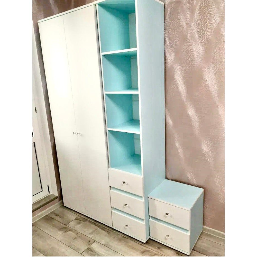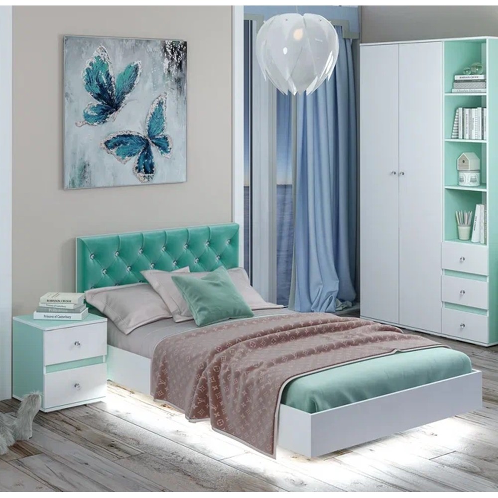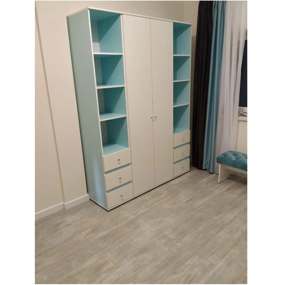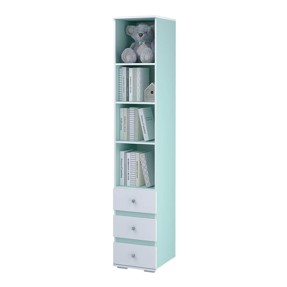 Размеры шкафа составляют 402 x 460 x 2176 мм, он оснащён тремя выдвижными ящиками и открытыми полками. Ручки выполнены в виде горного хрусталя, что придаёт изделию изысканность и элегантность. Благодаря своему дизайну и цвету, этот шкаф отлично впишется в любой современный интерьер.