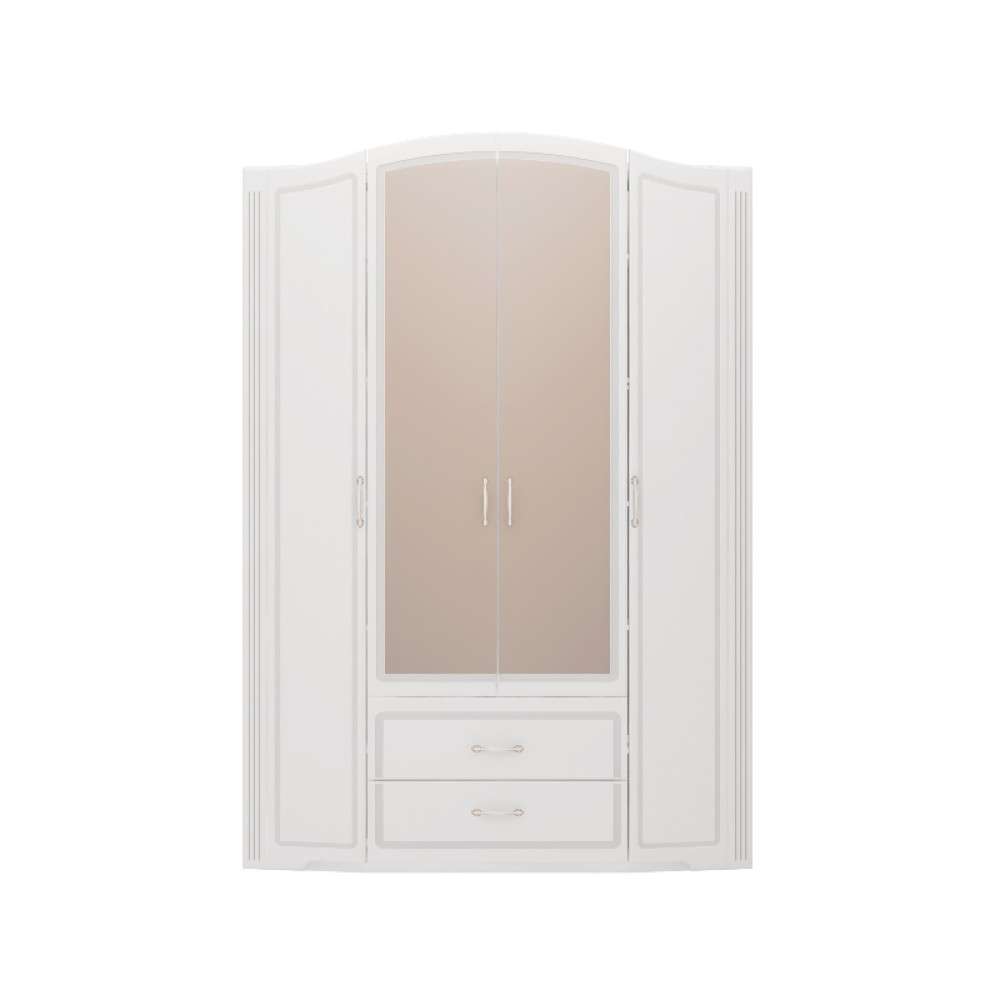 Виктория (02) шкаф для одежды с ящ 4-х дв С ЗЕРКАЛОМ белый снег/белый глянец