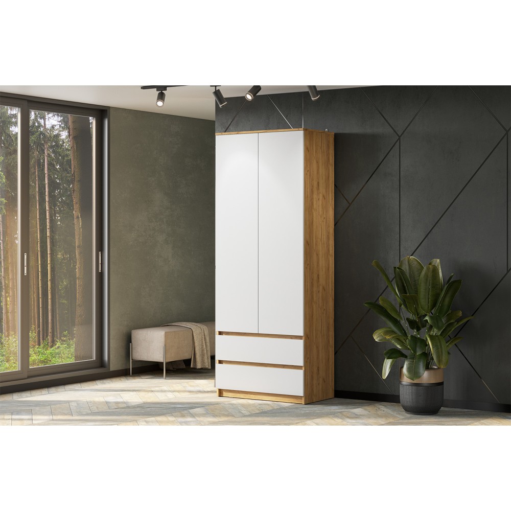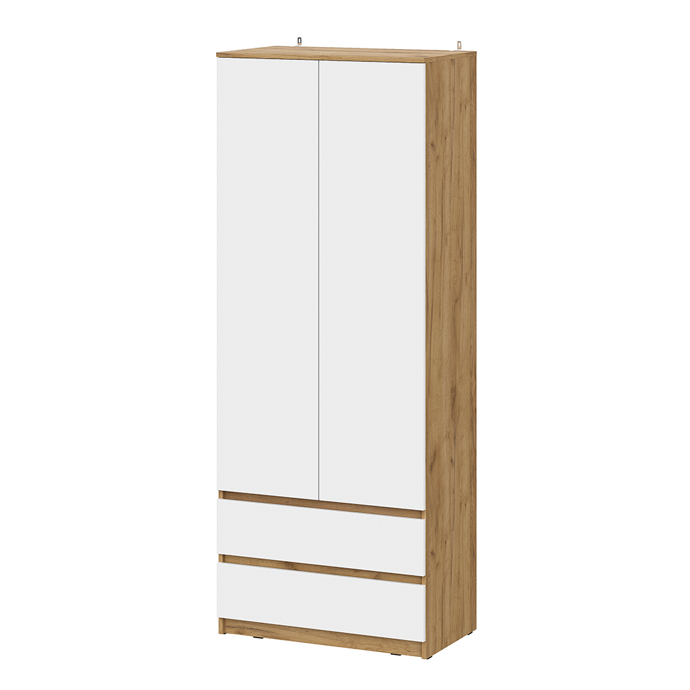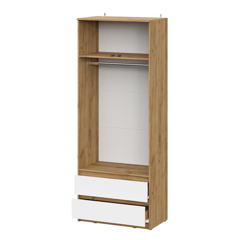 Шкаф Денвер с распашными дверьми и двумя ящиками - это идеальный выбор для тех, кто ищет стильную и функциональную мебель для своего дома. За распашными дверцами скрыты полки и штанга для одежды. Шкаф имеет два выдвижных вместительных ящика для хранения необходимых вещей. Цвет дуб золотой/белый выглядит стильно и практично, а благодаря своей универсальности, он подойдет для любого современного интерьера.