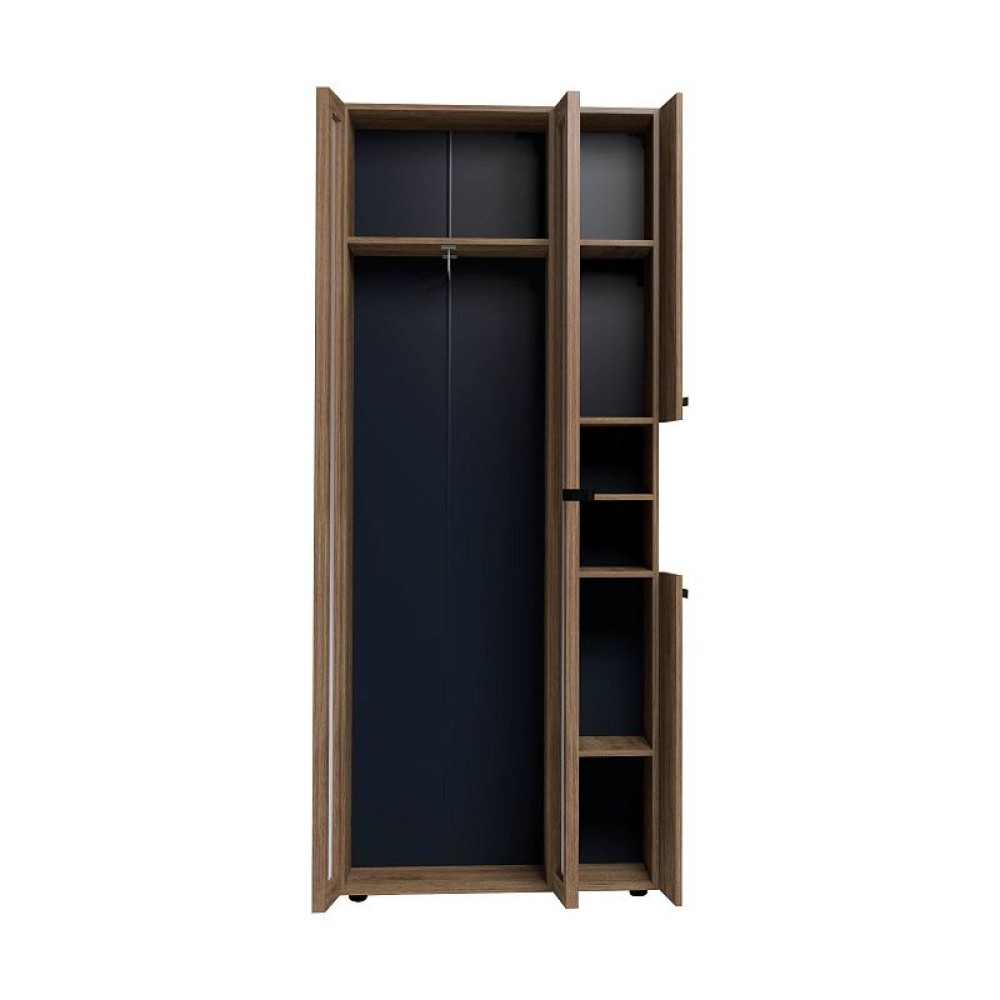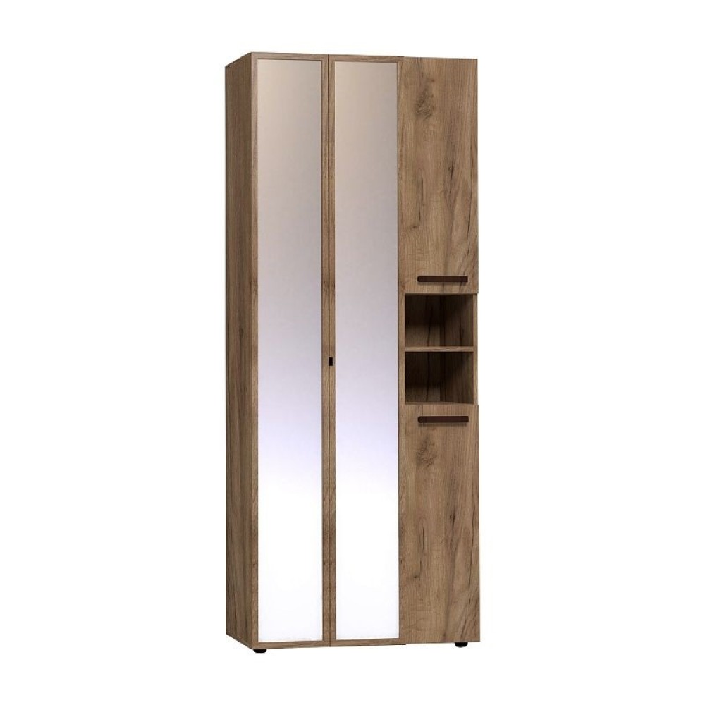 Nature 87 Шкаф для одежды и белья создаст все необходимые условия для хранения в прихожей верхней одежды и аксессуаров. В этом шкафу есть все необходимое для размещения верхней одежды: выдвижная штанга, верхняя полка, ряд регулируемых полок. Большая секция оснащена выдвижной штангой для развешивания пальто и курток на плечиках. Выдвижная штанга выдерживает вес до 10 кг. Один из зеркальных фасадов Контур открывается за ручку-петлю из черной экокожи, второй фасад - за раму. По желанию к модулю можно докупитьNature 94 Дополнительный модуль для Nature 87, который крепится под полку открытой ниши.