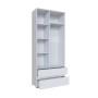В поисках внместительного белого шкафа со стандартными габаритами рекомендуем присмотреться к модели из серии Плейона. Двухстворчатый шкаф оснащен выдвижной евроштангой, комплектом полок и двумя выдвижными ящиками.
