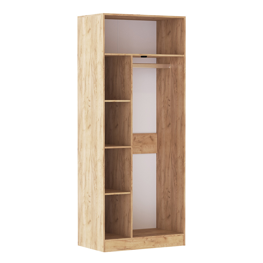 Шкаф для белья и одежды Руэлла оснащен двумя распашными дверцами, за которыми находятся полки для вещей и хромированная штанга для деликатной одежды на плечиках. На верхней полке сможете организовать место хранения для аксессуаров или коробок с сезонными вещами. Гармоничное сочетание цветов корпуса и фасадов идеально впишется в современный дизайн прихожей.