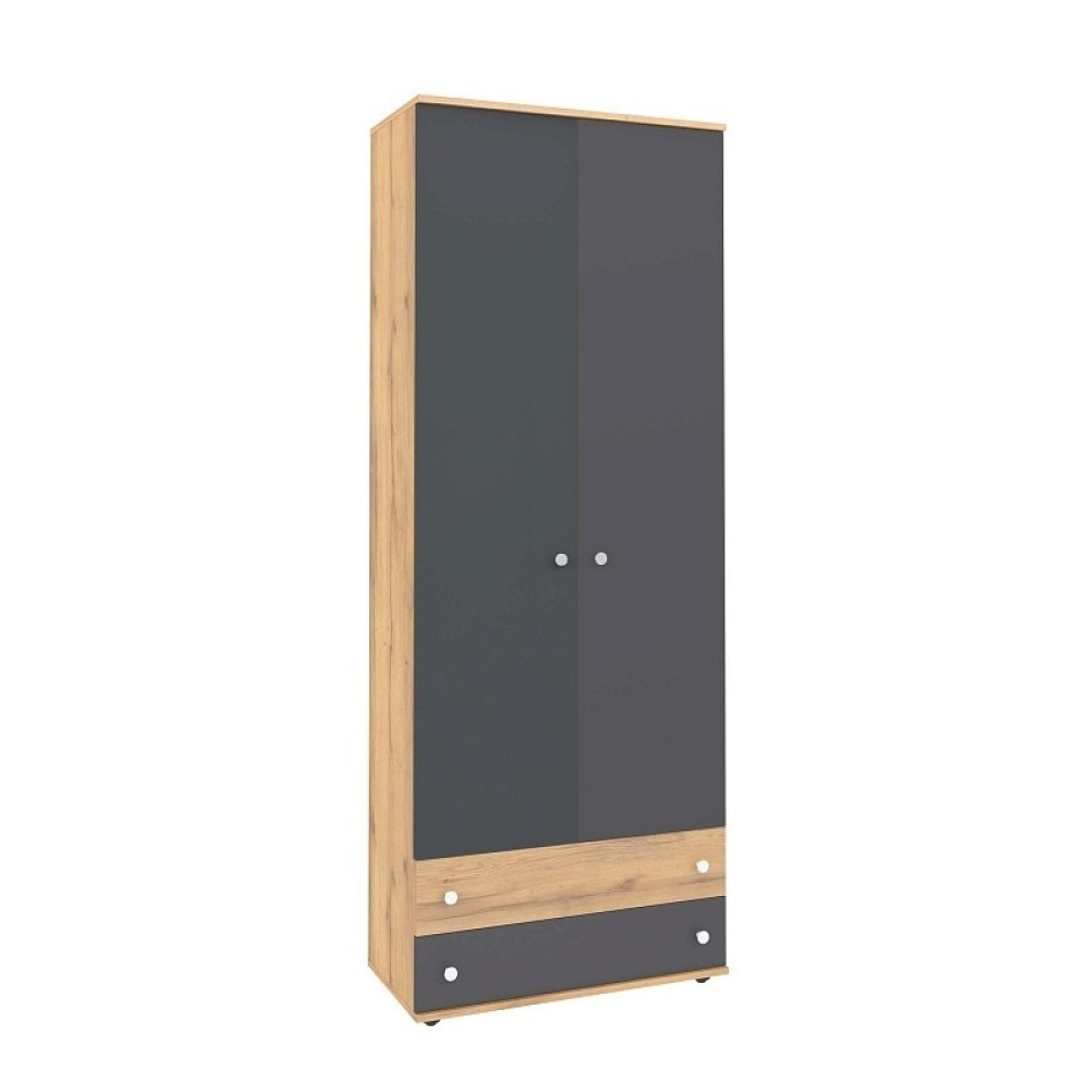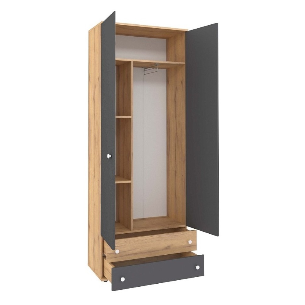 Шкаф из коллекции«Лойс» - практичное и функциональное решение для организации хранения в детской. Наполнение шкафа продумано для мелочей. Выдвижная штанга подойдет для размещения одежды на плечиках, комплект полок - для одежды в сложенном виде. В ящиках хватит места для гранения белья и других личных вещей ребенка. Кроме того, Вы имеете возможность выбрать цвет фасада шкафа: две белые дверцы, две в цвете "графит" или их комбинацию.